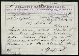 This telegram survives, and was later framed by Horatio Spafford, and put up on the wall of their home at Lake View. It is now kept in the Library of Congress in Washington DC.