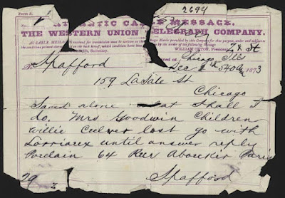 Saved alone. What shall I do. Mrs Goodwin Children Willie Culver lost. Go with Lorriaux until answer. Reply Porclain 64 Rue Aboukir Paris.